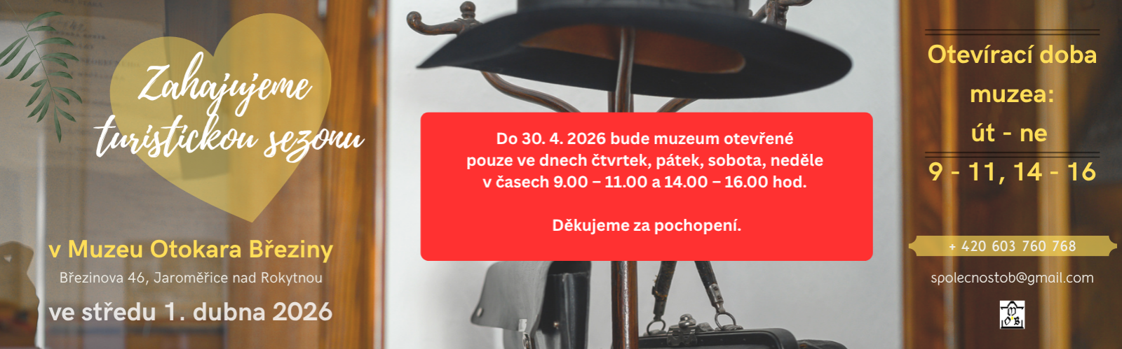 Od 1. listopadu 2025 přechází Muzeum Otokara Březiny do zimního provozu, během něhož je pro návštěvníky a turisty oficiálně uzavřeno. Znovu bude možné navštívit komentované prohlídky od středy 1. dubna 2026, kdy začne nová sezóna. Ještě předtím…