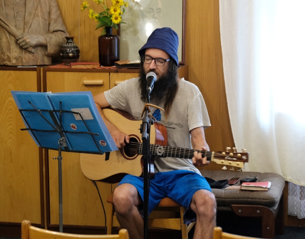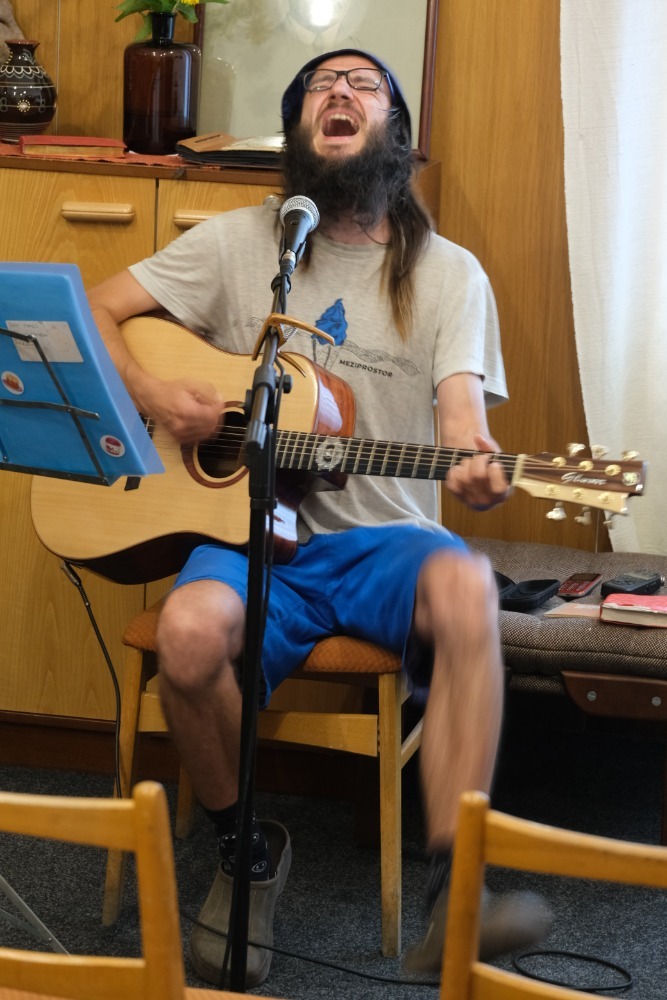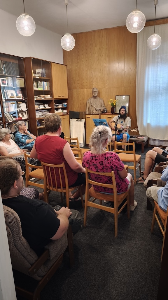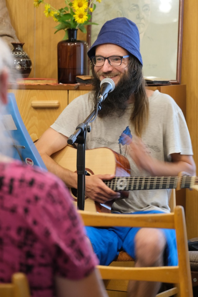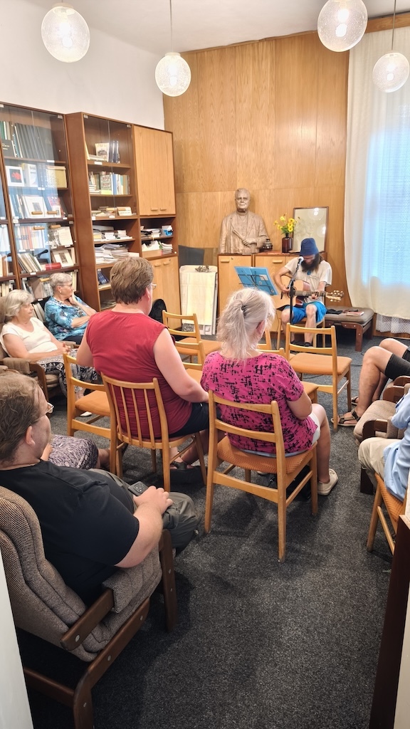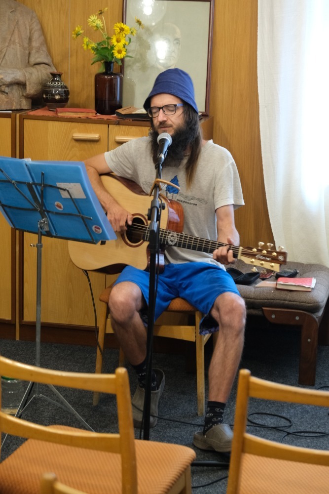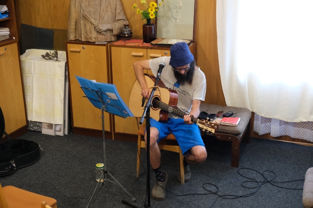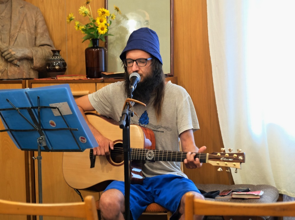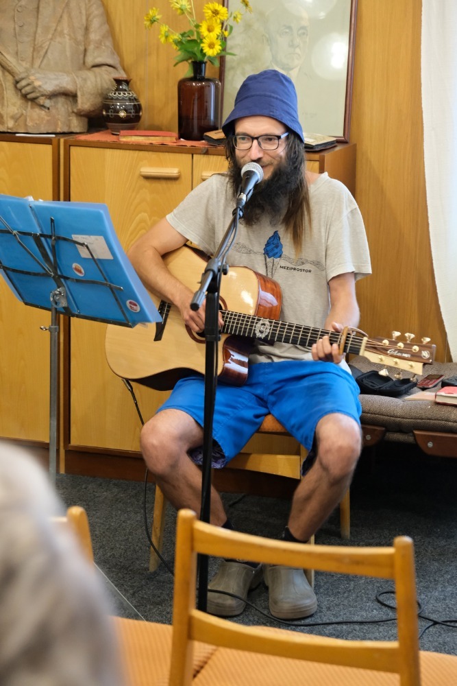 V polovině srpna léto vrcholilo, vysoké teploty se daly nejlépe přežít buď u vody, nebo někde ve stínu. Z tohoto důvodu bylo skvělým rozhodnutím navštívit v páteční podvečer dne 15. srpna 2025 program v Muzeu Otokara Březiny. V chládku knihovny muzea se konal koncert jaroměřického rodáka Františka Hrdého alias Fany Fanése.
